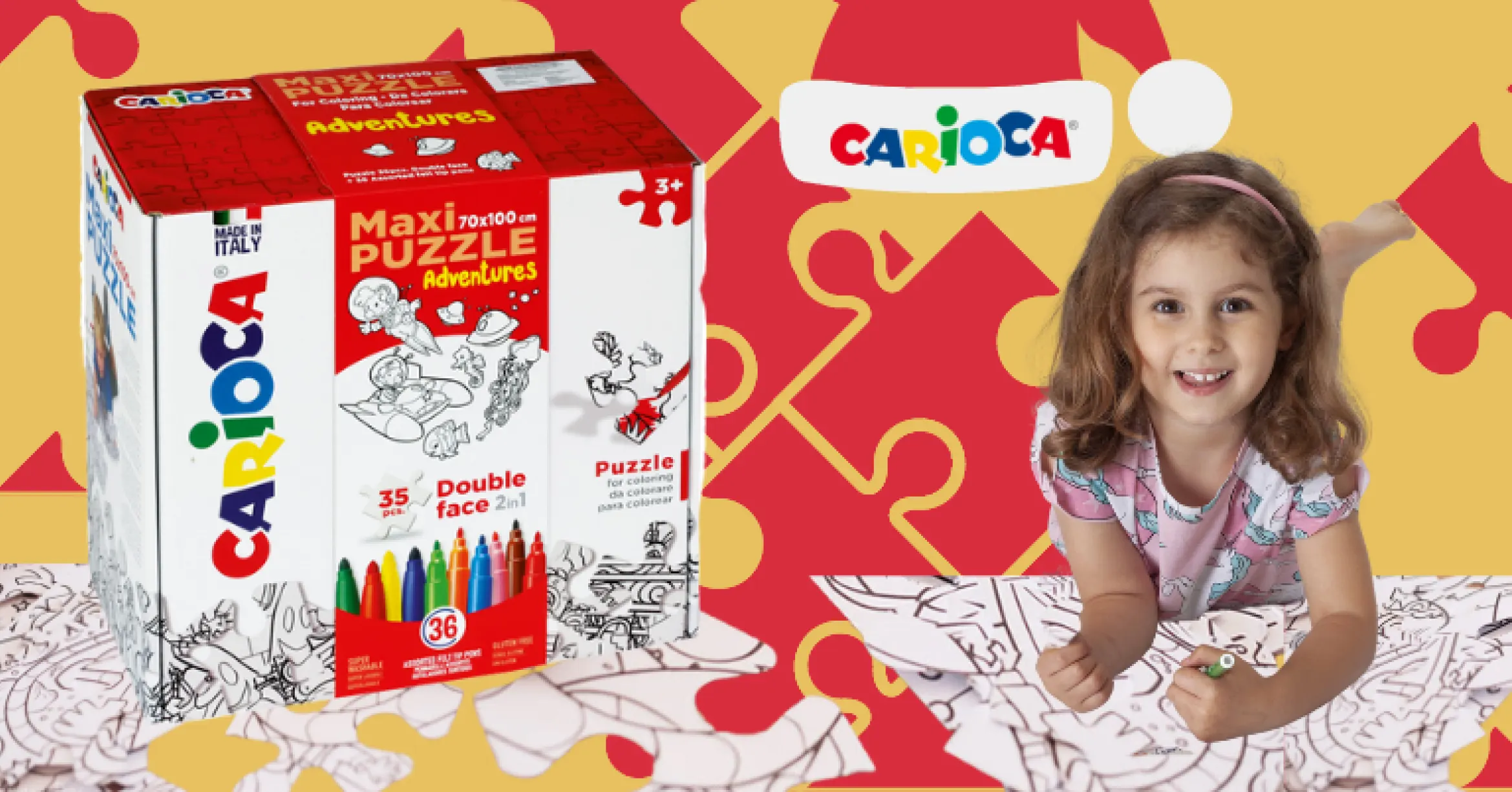 Układanie puzzli to dobra zabawa edukacyjna już dla trzylatka, ponieważ ćwiczą pamięć, koncentrację i sprawność manualną. Puzzle, które poleca Mikołaj, są wyjątkowe z kilku powodów. Powód pierwszy: poza układanką mamy tu jednocześnie kolorowankę. Powód drugi: są ogromne, jeden kawałek ma rozmiar dłoni dorosłego człowieka. Powód trzeci: te kawałki składają się w bardzo dużą układankę (70x100 cm), która może służyć np. jako podkładka na podłogę. Powód czwarty: są dwustronne, więc zabawy w składanie i kolorowanie jest dwa razy więcej! W pudełku znajdziecie też 25 pisaków Joy z cienką końcówką idealną do kolorowania detali oraz 12 pisaków Jumbo z grubą końcówką do kolorowania większych elementów.