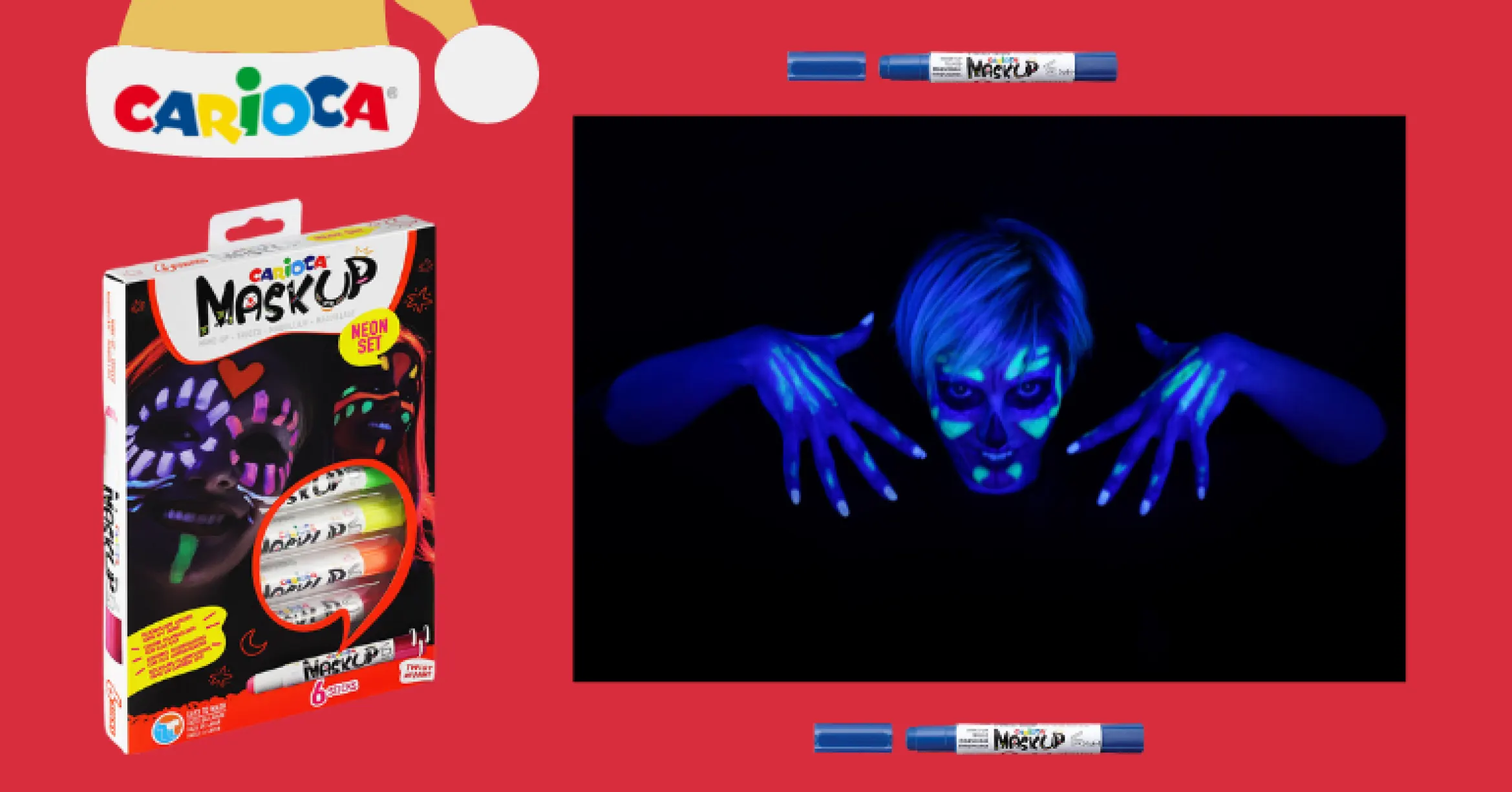 Kredki szczególnie sprawdzą się w sezonie karnawałowym. Są całkowicie bezpieczne dla skóry dzieci, hipoalergiczne i łatwe do zmywania. Ich konsystencja nie powoduje osypywania się czy ścierania, łatwo je również sprać z ubrań, co z pewnością ucieszy wszystkich rodziców. Zestaw kredek do malowania twarzy to 6 kolorów zamkniętych w wykręcanych sztyftach, dodatkowo możecie wspomagać się przy ich aplikowaniu pędzelkiem. A ci z Was, którzy lubią świecić w ciemności, mogą wybrać kredki fluorescencyjne świecące pod wpływem światła UV.