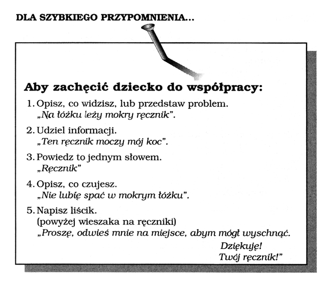 Istotne są właściwie sformułowane komunikaty, którymi chcemy zachęcić dziecko do współpracy z nami. Oto słowa-klucze: